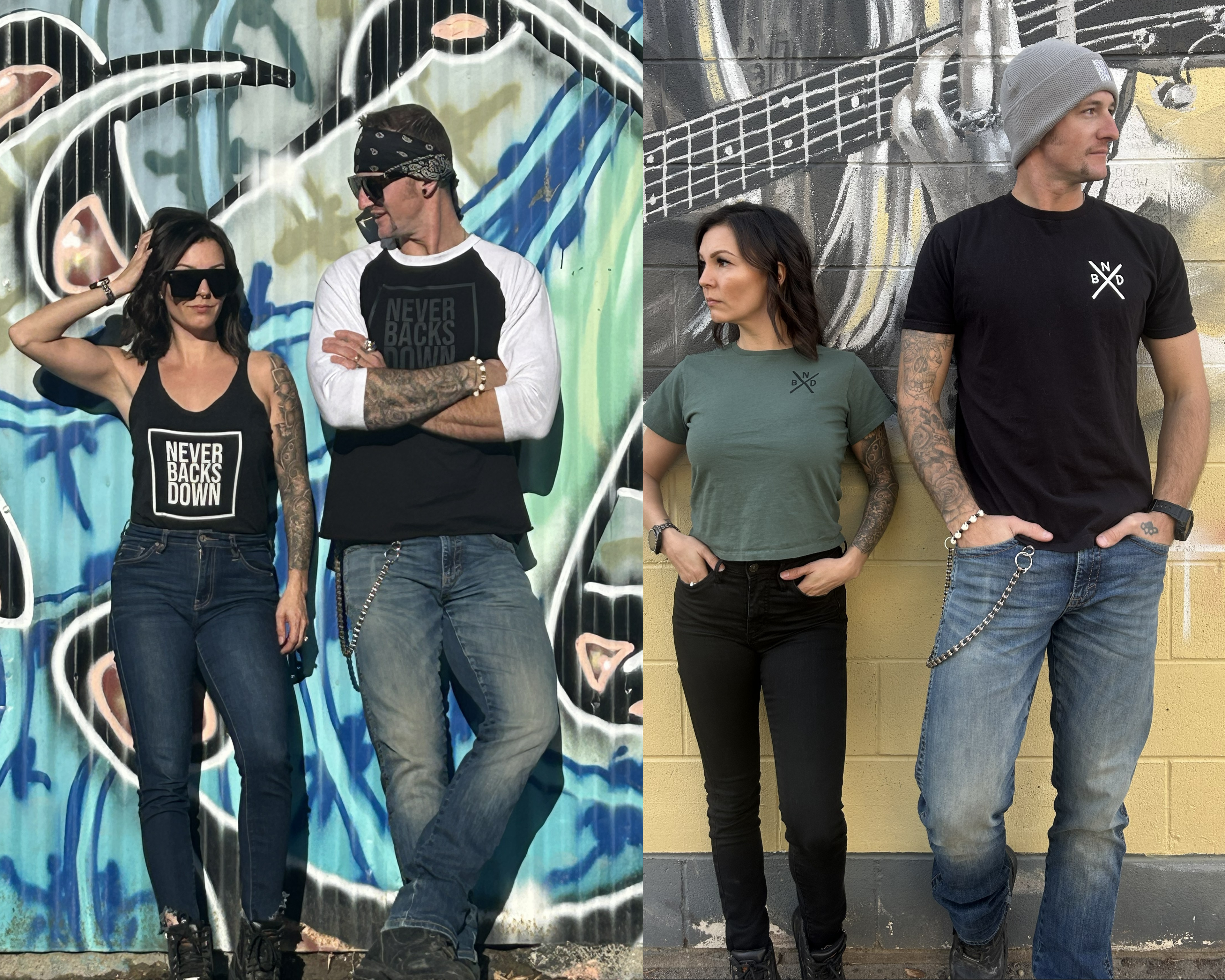 We didn't just change our lives. We rebuilt them from the ground up. Every piece we create is a reminder that you're stronger than your past, bolder than your fears, and capable of anything when you refuse to back down. Meet Matt and Kayla - the creators behind NEVER BACKS DOWN.